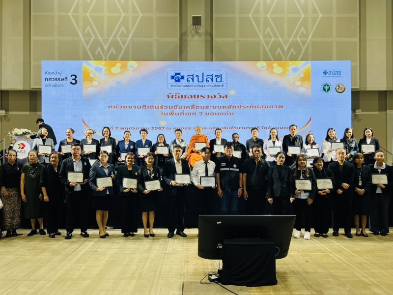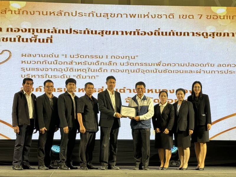 นายสมบัติ แสงงาม นายกอบต.หนองแวง พร้อมด้วยคณะกรรมการกองทุนหลักประกันสุขภาพ อบต.หนองแวง และเจ้าหน้าที่ฯ เข้ารับรางวัลเชิดชูเกียรติ 1 กองทุน 1 นวัตกรรม ประเภท “ หมวกกันน็อค สำหรับเด็กเล็ก เพื่อการป้องกันอุบัติเหตุและการบาดเจ็บของศีรษะ“ ณ ศูนย์ประชุมและแสดงสินค้านานาชาติขอนแก่น