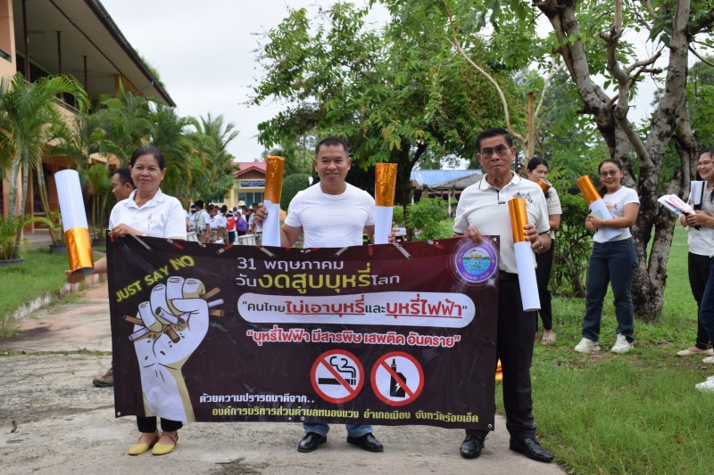 นายสมบัติ แสงงาม นายก อบต.หนองแวง พร้อมด้วยคณะผู้บริหาร,หัวหน้าส่วนราชการ,และเจ้าหน้าที่ อบต.หนองแวง ร่วมกับโรงเรียนบ้านแวงวิทยา นำโดยนายชุมพร ภามนตรี ผู้อำนวยการโรงเรียน พร้อมบุคลากร และนักเรียน และศูนย์พัฒนาเด็กเล็กบ้านแวง ร่วมกิจกรรมเดินรณรงค์เนื่องในวันงดสูบบุหรี่โลก ประจำปี 2568 ในวันที่ 31 พฤษภาคม 2568